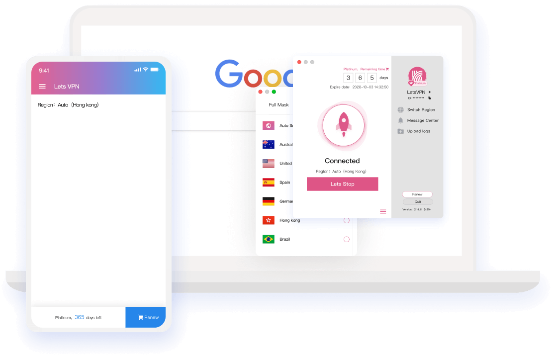 LetsVPN supports global network resources, unrestricted and unrecorded access to any resources, and at the same time uses the most advanced technology to help you erase any traces.